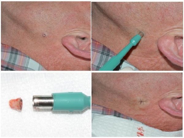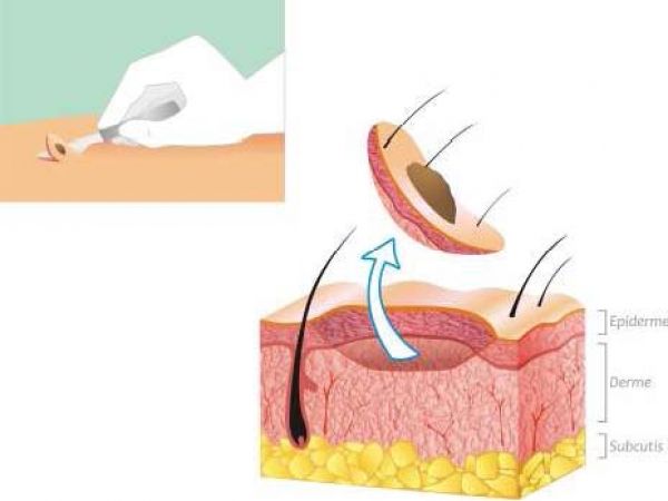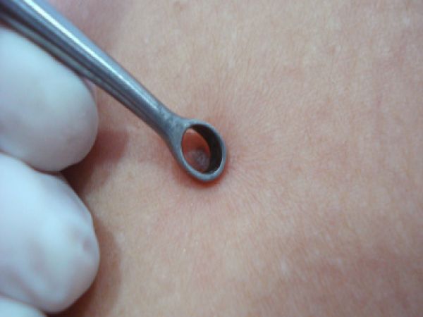 A biopsia é um procedimento simples, em que um pequeno fragmento da pele ou da mucosa é retirado para análise patológica, com o objetivo de diagnosticar um doença da pele, seja ela um tumor ou um outro tipo de dermatose. Há dois tipos principais de biopsias da pele: por “shaving”, quando o dermatologista utiliza uma lâmina ou um bisturi especial para retirar uma pequena amostra da pele, deixando uma cicatriz achatada, e por “punch”, em que se utiliza um aparato redondo e cortante que entra na pele, retirando uma coluna de tecido. A espessura de tecido retirado irá depender da região do corpo. Normalmente, nesse caso é necessário fechar a área com pontos. A pequena peça retirada é enviada ao laboratório de patologia. Durante o procedimento, é aplicado anestesia local, com ou sem vasoconstritor, de acordo com a indicação médica. A biopsia por “shaving” demora de três a quatro dias para cicatrizar, enquanto que a por “punch” leva de 5 a 14 dias, dependendo do local e do diâmetro do aparelho utilizado.