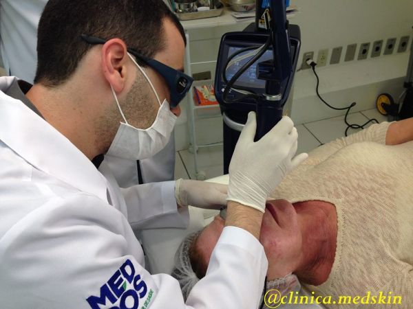 A Clínica MedSkin já oferece o serviço de Laser de CO2 com profissionais treinados. Na foto abaixo Dr Bruno está realizando o procedimento.