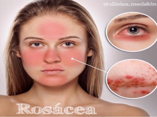 Você conhece alguém com aquelas bochechinhas rosadas, uma que outra espinha e que piora com a ingrata de bebida alcoólica, quente ou com muito tempero? Pois bem, isso pode ser um sinal de rosácea!A primeira manifestação é chamada de pré-rosácea. Sua principal característica é a tendência à ruborização fácil e passageira. O quadro evolui progressivamente para uma vermelhidão (eritema) no centro da face, que não regride e está associada a crises de calor e ardência. Nessas áreas vermelhas, ocorre um aumento de vasos sanguíneos semelhantes a teias de aranha (telangiectasias) e de pápulas ou pústulas. Essas lesões inflamatórias se diferenciam das provocadas pela acne, porque não apresentam pontos pretos.
